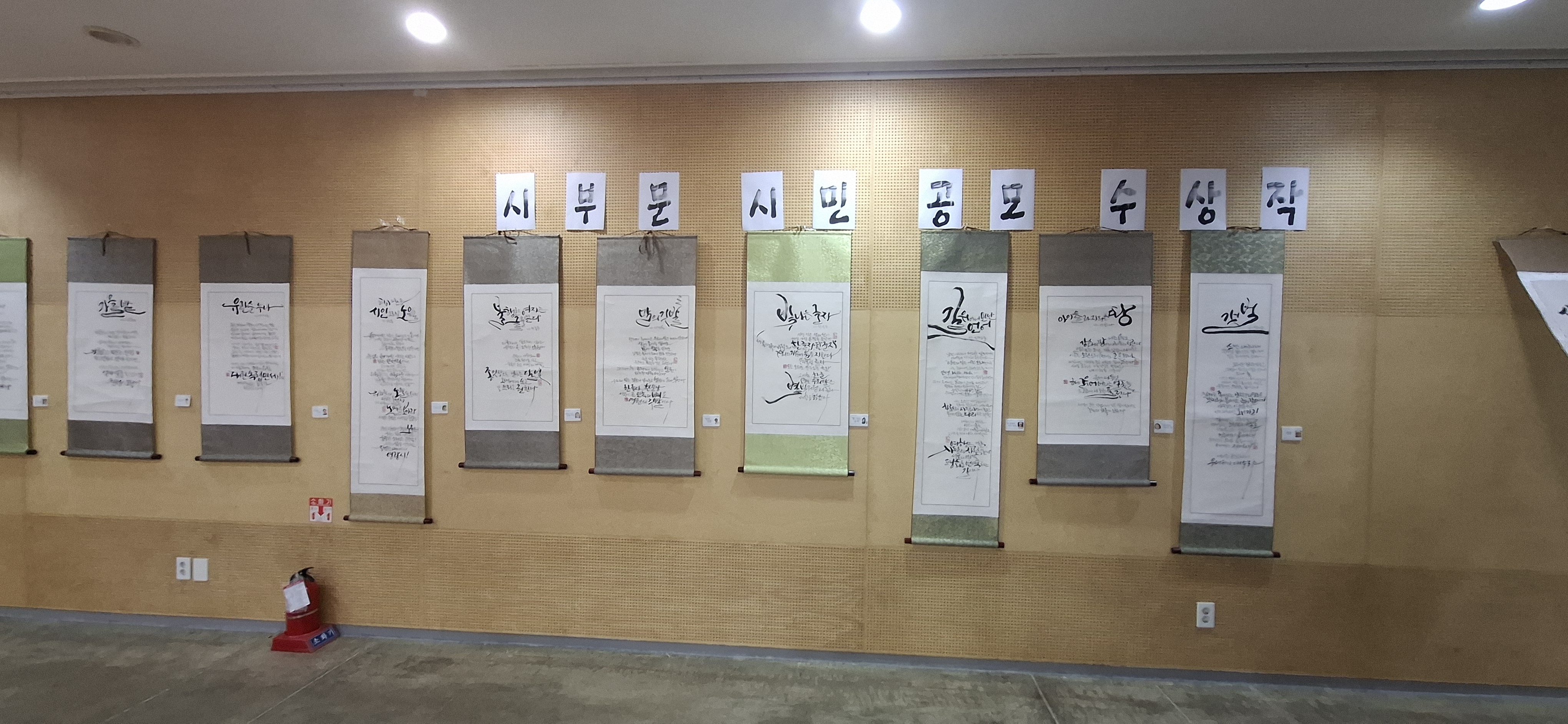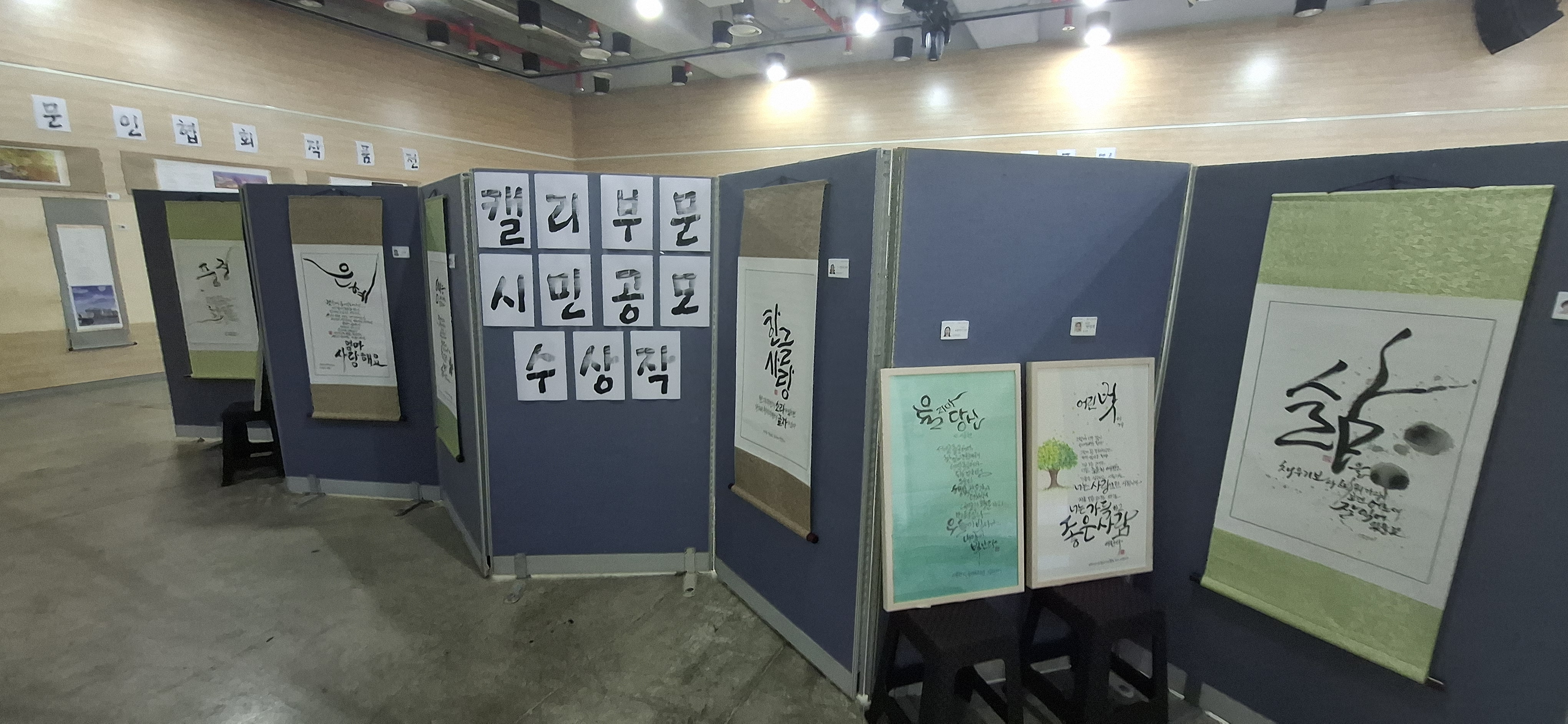 시호 미술 켈리그라피 사진등 이 당선작들이 전시되어 있습니다.